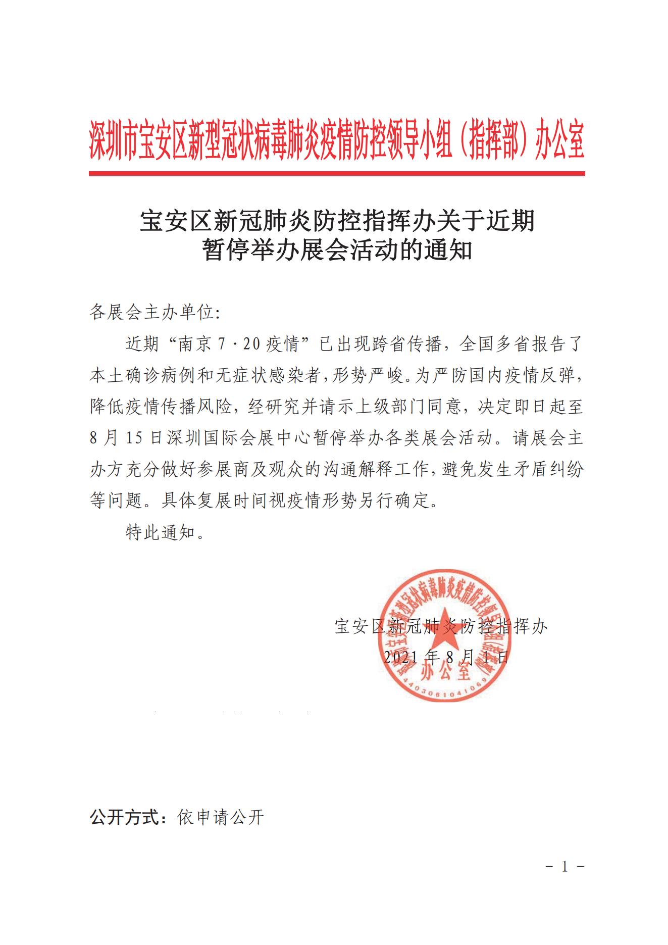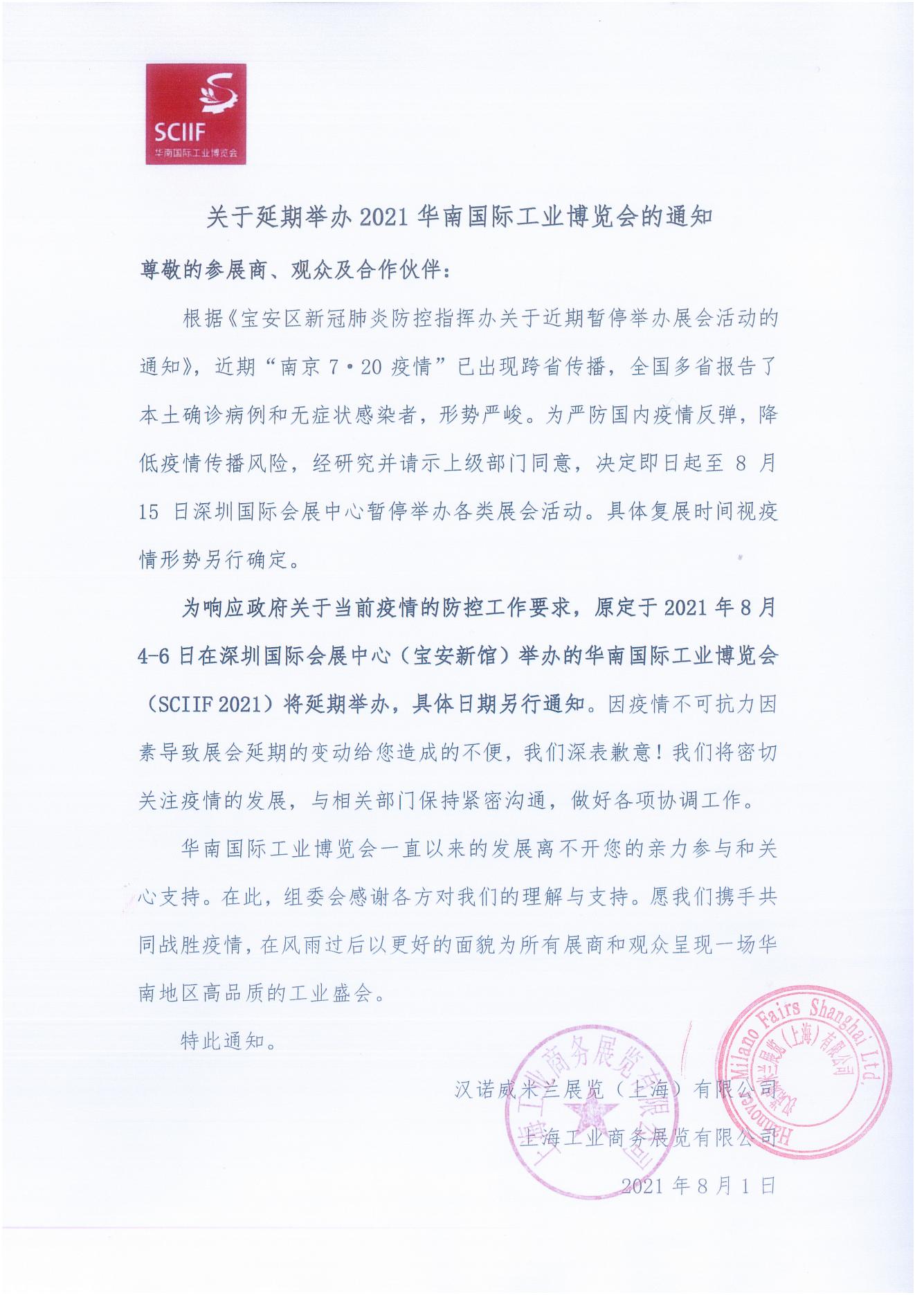 接通知,受相關疫情影響,原定于8月3日的展會延期
