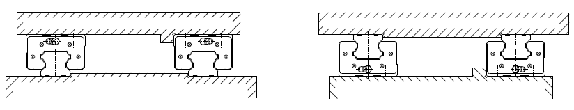 直線導(dǎo)軌能承受上、下、左、右方向負(fù)荷,因此可根據(jù)機(jī)臺(tái)結(jié)構(gòu)與工作負(fù)荷方向配置直線導(dǎo)軌組。