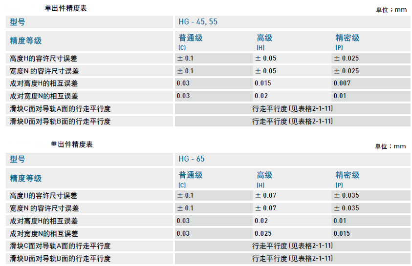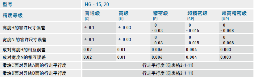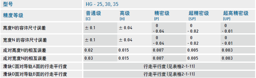 HG系列直線導軌的精度,分為普通、高、精密、超精密、超高精密級共五級,客戶可依設備精度需求選用精度。