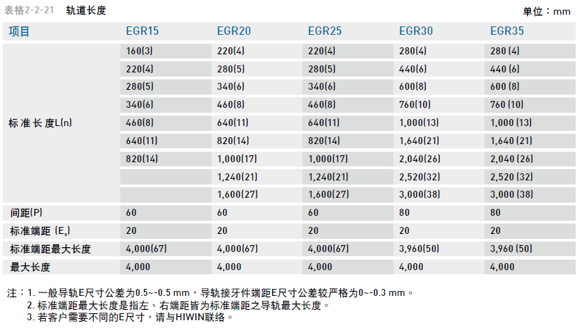 2. 標準端距最大長度是指左、右端距皆為標準端距之導軌最大長度。