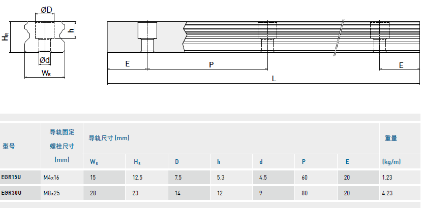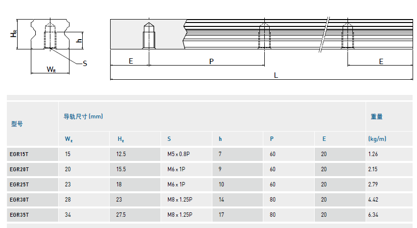 直線導(dǎo)軌EG系列上、下鎖式區(qū)別及尺寸表