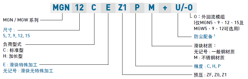 (1) 非互換性直線導軌產品型號