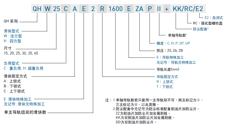 (2) 注: 1.單軸導(dǎo)軌數(shù)若只使用一支導(dǎo)軌則不寫,兩支標(biāo)記為Ⅱ,