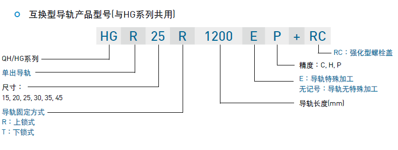 ? (3)互換型導(dǎo)軌產(chǎn)品型號(與HG系列共享)
